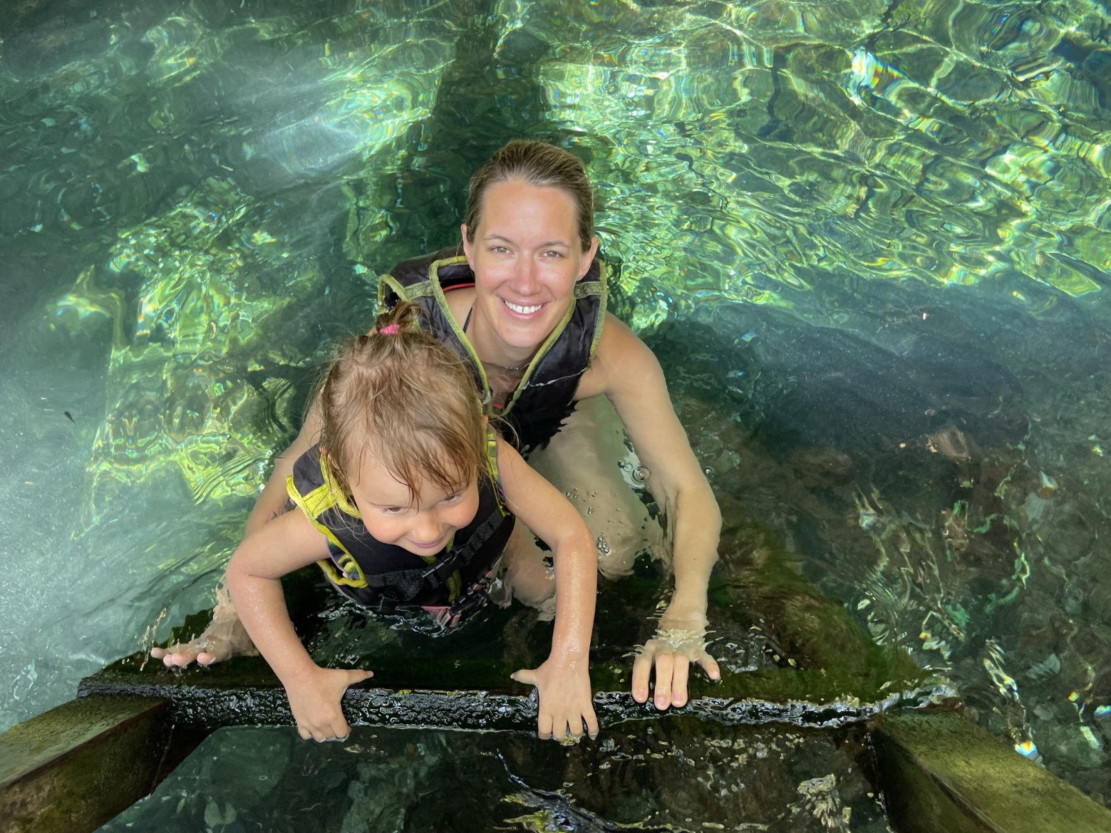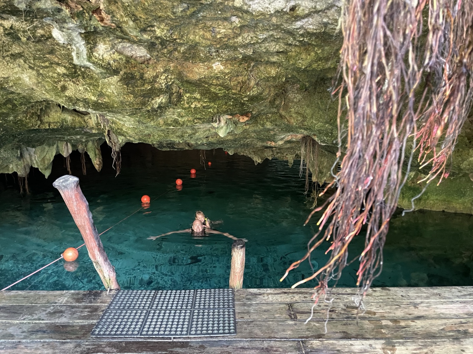 Järgmisel päeval läksime esimest korda cenotesse ehk karstialale ujuma. Gran cenote asub rohkem maa all. Seal on suured veealused koopad, kus ujuvad erinevaid kalad ja kilpkonnad. Vesi on seal veidike jahedam aga väga mõnus jahutus kuumas päevas. Pilet ujumiseks maksis täiskasvanule umbes 12.50€. Hinnas oli ka ujumisvest, ilma milleta ujuda ei lubatud. Rentisime lisaks kapi asjade hoiustamiseks ja snorgeldamisvarustuse, kokku 4.60€. Kui trepist alla cenote juurde jõudsime, siis vajus kõigil karp lahti. Niii selge ja läbipäistev vesi, et woww. Kuna too hommik alguses veidike sadas siis päike kohe vee peale ei paistnud siis järgmine hetk, kui päike välja tulu, siis vesi lausa säras ja sillerdas. Ma olen midagi sarnast Austraalias näinud aga seal olid need kuumaveeallikad ning nendes väga pikalt ei kannatanud vees olla.