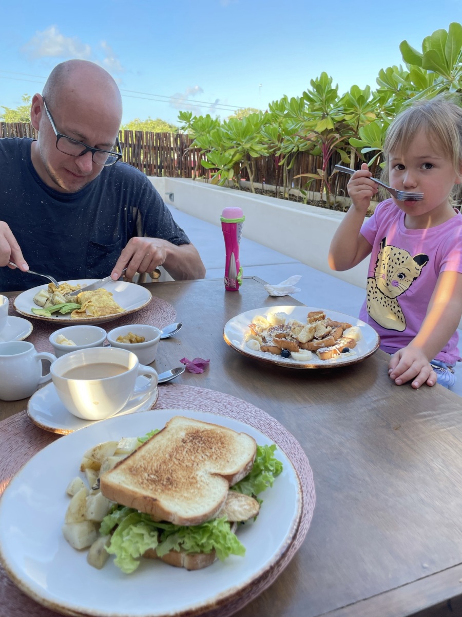 Tulumis oli esimene hotell, kus oli veidike korralikum bassein ja rikkalik hommikusöök hinnas. Ega eelmistel ka viga polnud aga võiga röstisaiast, munapudrust ja ainult puuviljadest hakkas vaikselt isu täis saama ning Heili ammu juba soovis basseini ujuma saada. Peale hommikusööki kiire ujumine ja siis suund pesumajja. Siin on pesumajad väga tavapärased ja asuvad pea iga tänava nurgal. 3kg pesu pesemist maksis 2.15€, ehk siis enamus meie reisi riietest.