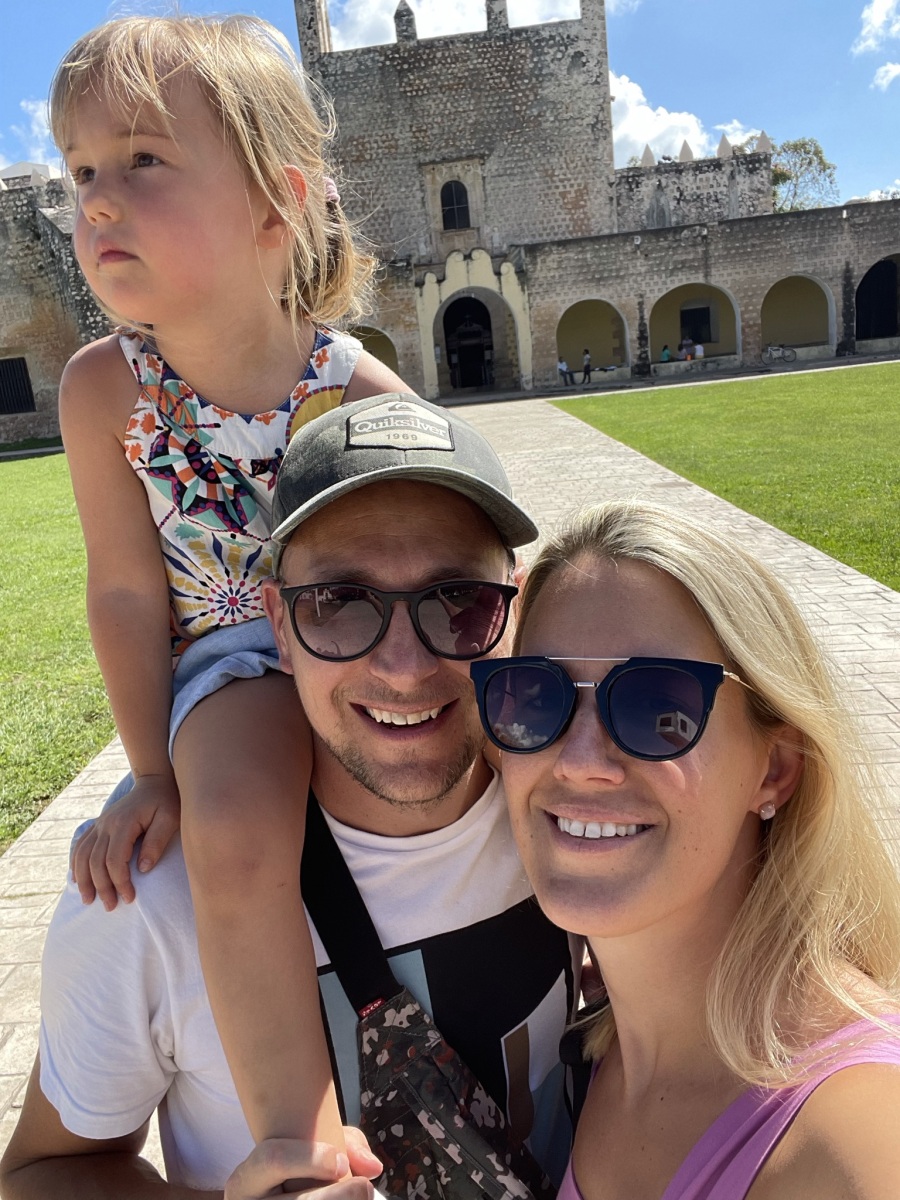 Tulumist Meridasse autoga on 272km ja u.4 tundi sõitu. Tegime teepeal väikese peatuse Valladolidis, kus leidsime üle pika aja ühe mäguväljaku, kus Heili sai ringi joosta. Uudistasime natuke lossi ja lõunatasime juhuslikult ühes väga ägedas söögikohas. Söögikoha seinal oli ka suur maailma kaart, kuhu said külastajad oma koduriigi kohale nõela torgata. Paar nõela oli isegi Eesti peale torgatud. Üldjuhul kui kuuldaks, et oleme Eestist tuleb esmalt WOW ja kui küsime kas teate ka Eesti kohta midagi, siis tegelikult väga ei teata. Esimestel päevadel Isla Mujeresel kohtasime ühte eesti paari aga peale nende pole rohkem kohanud. Peale lõunasööki oli meil veel veidi üle 2 tunni sõita. Sõitsime mööda ka Yucatani poolsaare kõige tuntumast vaatamisväärsusest Chichen Itza maiade templist. Peatust me seal ei teinud, kuna rahvast oli seal meeletult, päike jälle küttis mõnuga ja templi juures ei pidanud üldse varju olema.